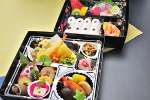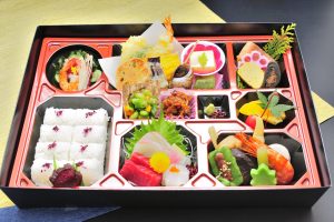 会席料理を重厚感漂う箱に盛り込んだ人気商品です。季節により内容を一部変更致しますご了承ください。