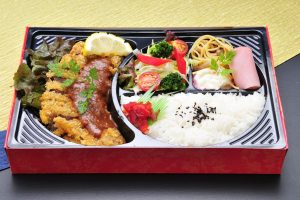 醤油やみりんにこだわった甘辛ダレを焼きからめてご飯にのせました。ご飯のすすむ人気のお弁当です。